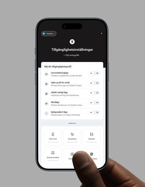 OneTap gör det enkelt att ta steget mot en mer tillgänglig webbplats. Lösningen anpassar webbens kontraster, textstorlekar och navigering så att fler kan ta del av innehållet. Det skapar en bättre användarupplevelse – något som både kunder och sökmotorer uppskattar.